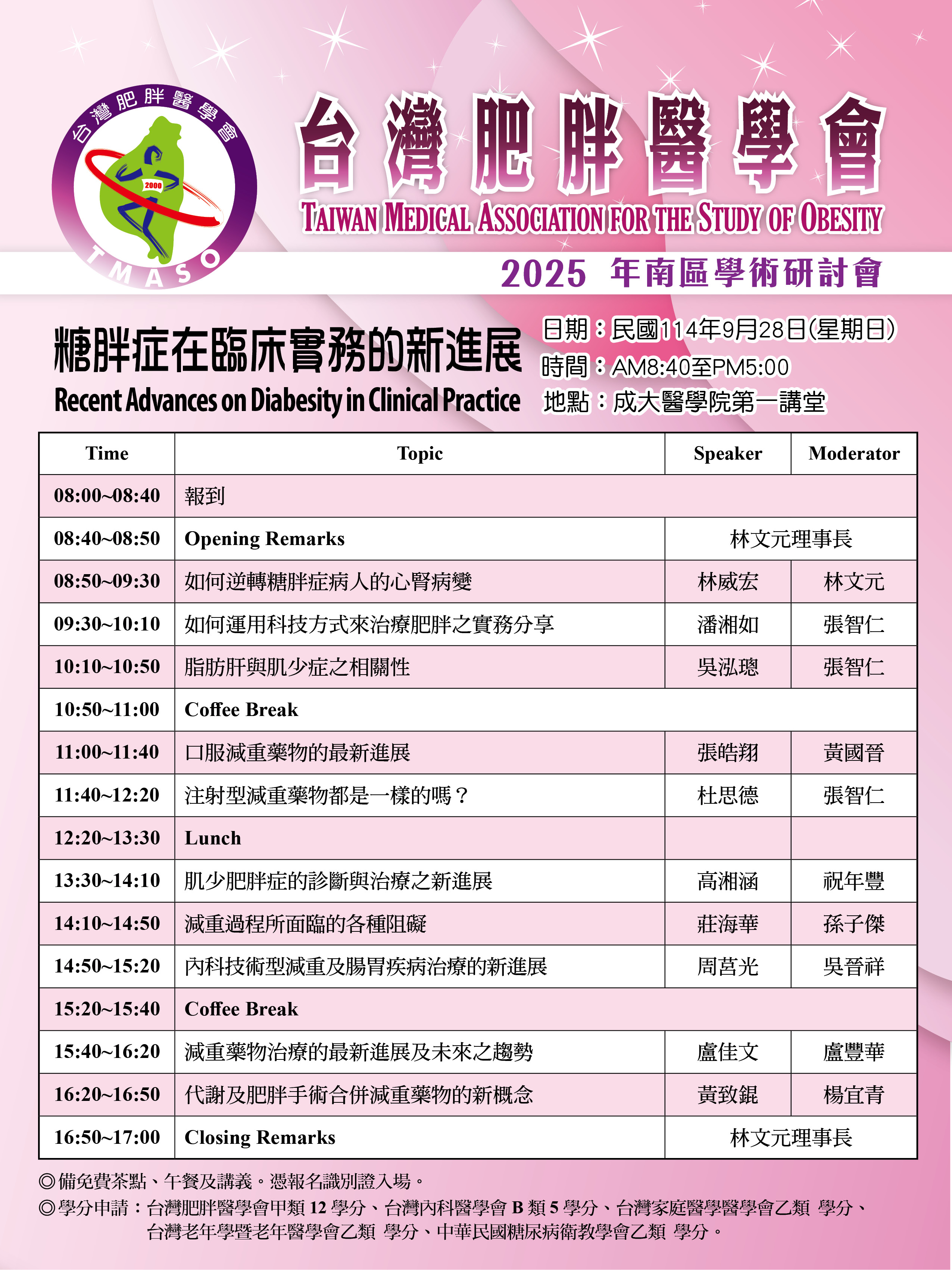 | 主辦單位 | 社團法人台灣肥胖醫學會 |