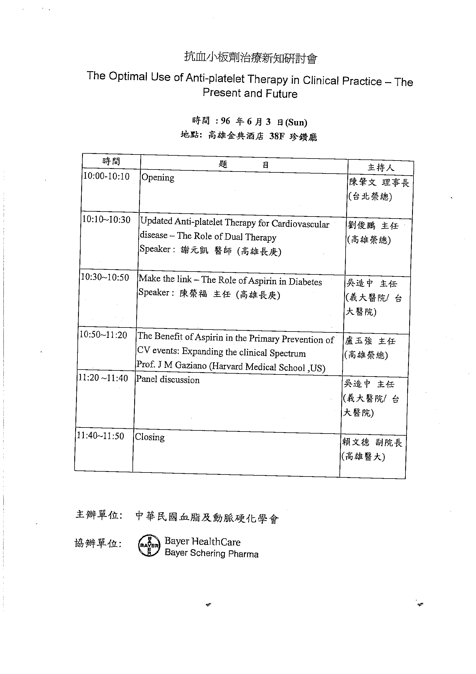 The Optimal Use of Anti-platelet Therapy in Clinical Practice(高雄) |