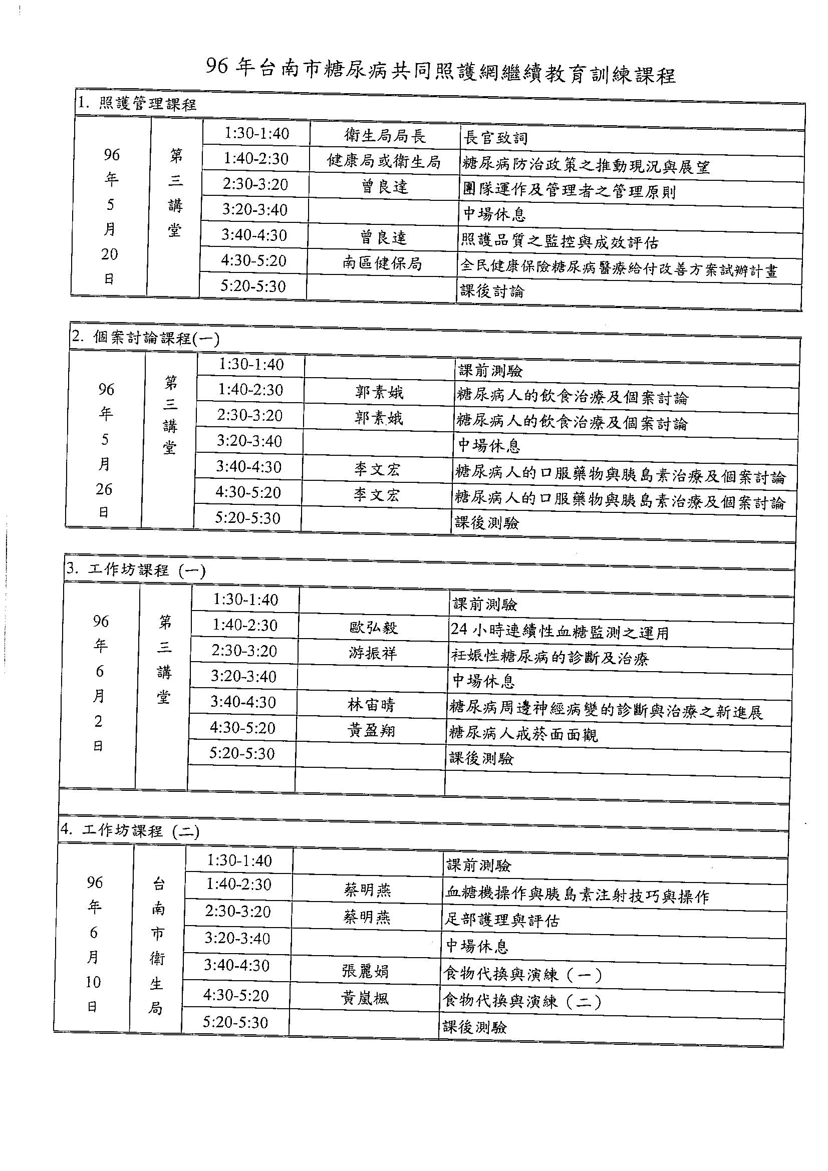 96年台南市糖尿病共同照護繼續教育訓練課程(5/26) |