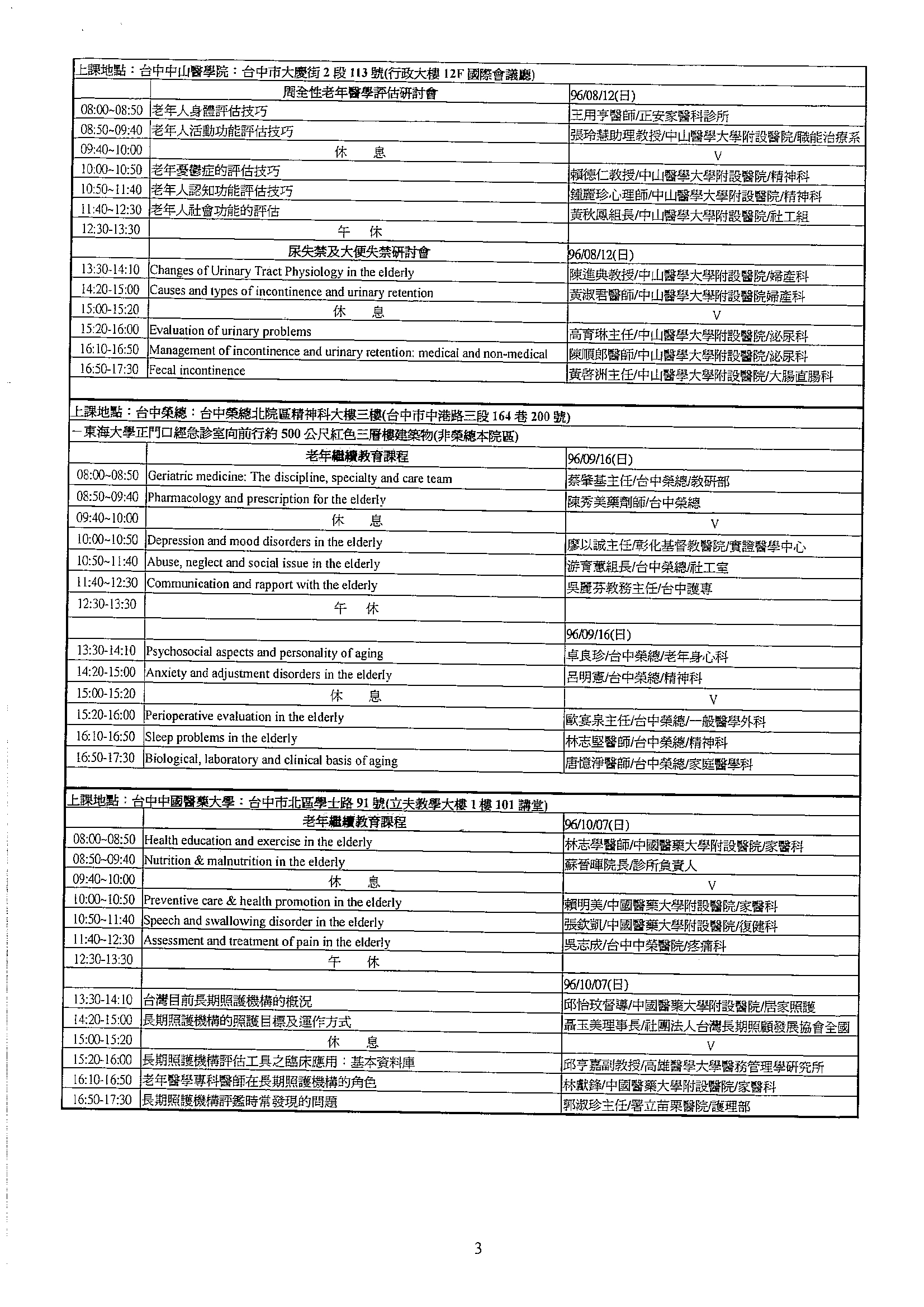 台灣老年醫學會第十一期繼續教育核心課程 |