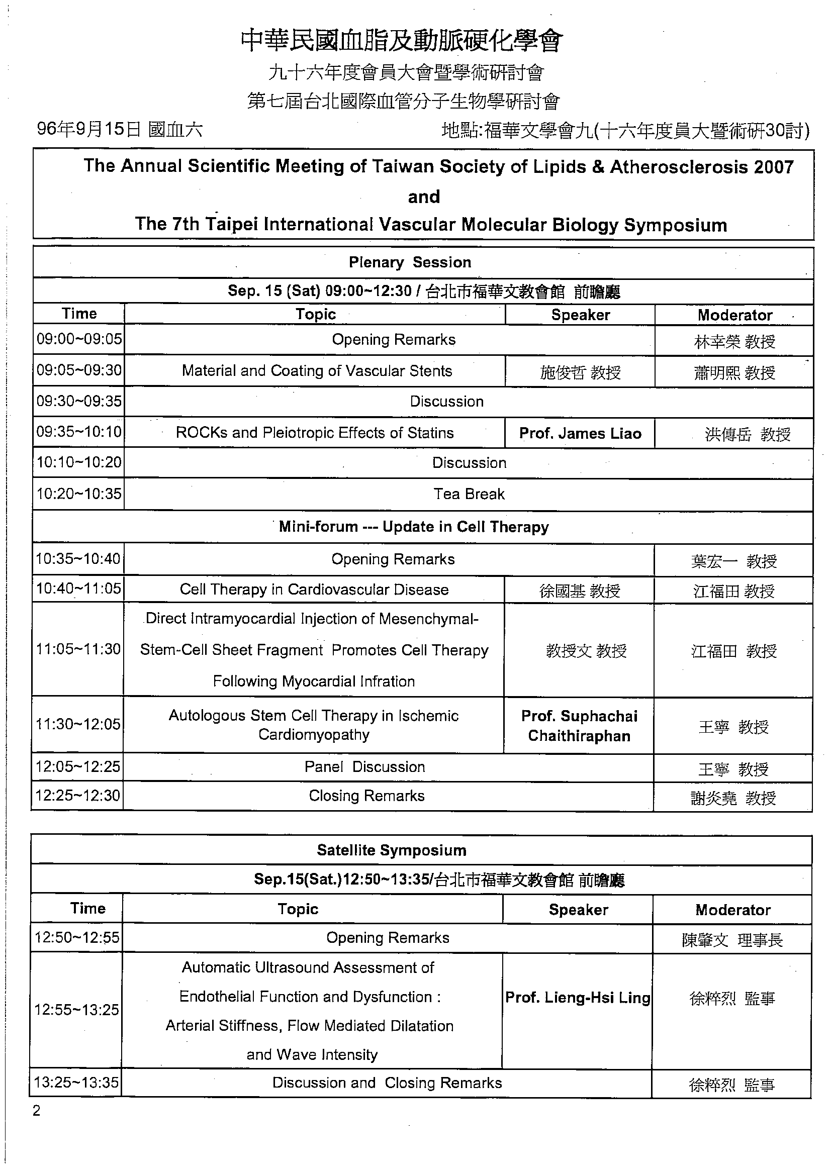 中華民國血脂及動脈硬化學會96年會員大會暨學術研討會 |