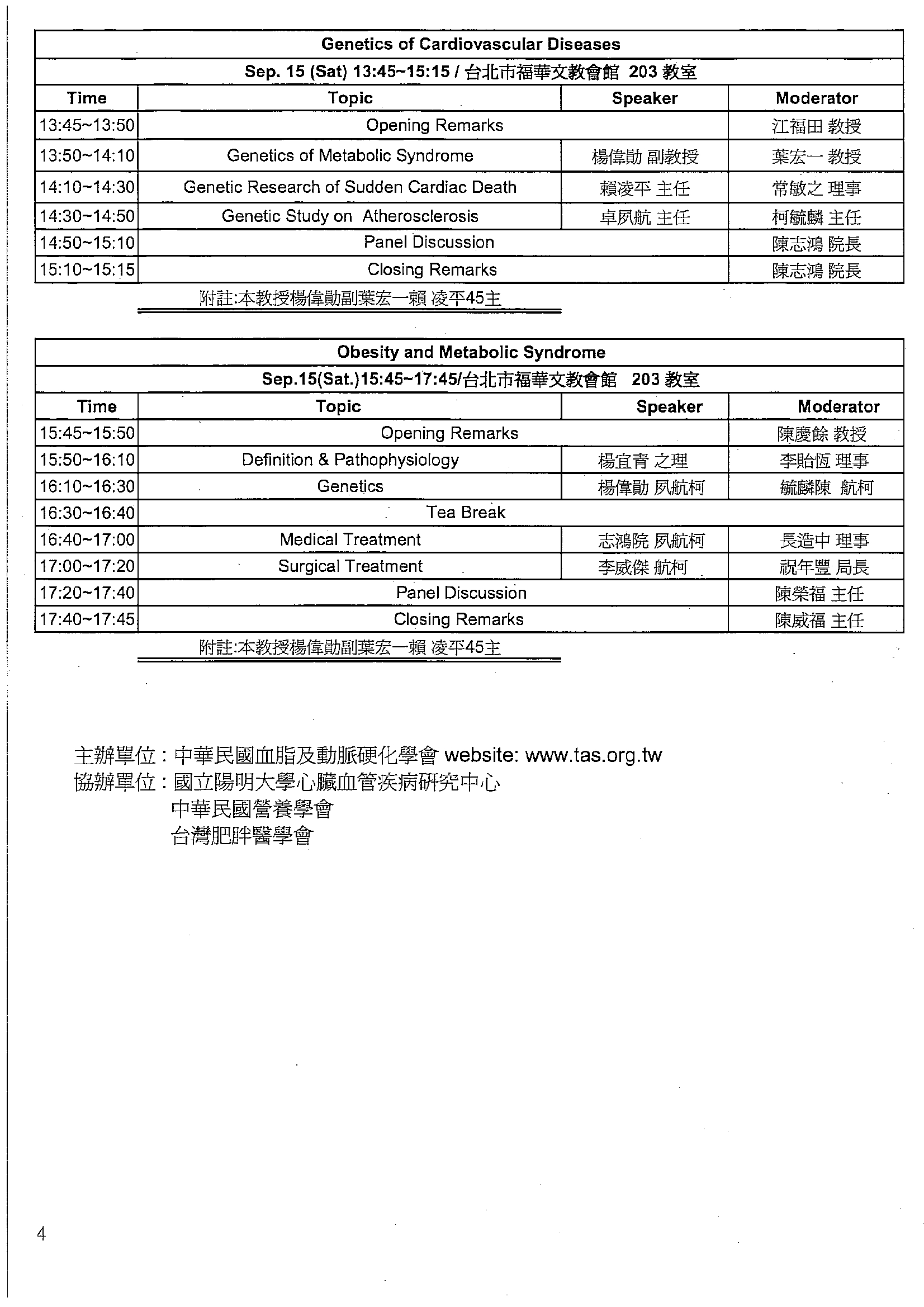 | 主辦單位 | 中華民國血脂及動脈硬化學會 |