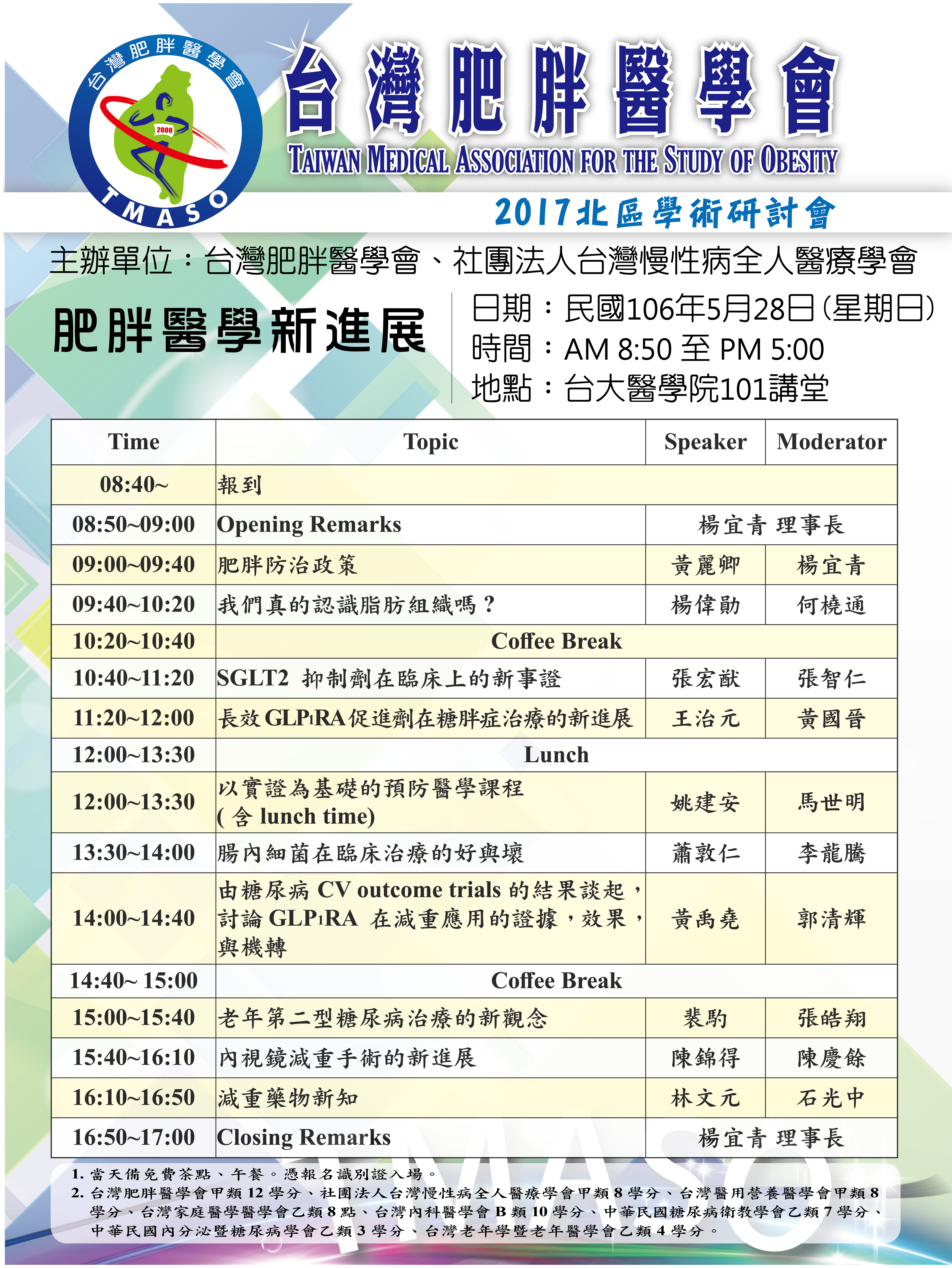 台灣肥胖醫學會2017北區學術研討會 |